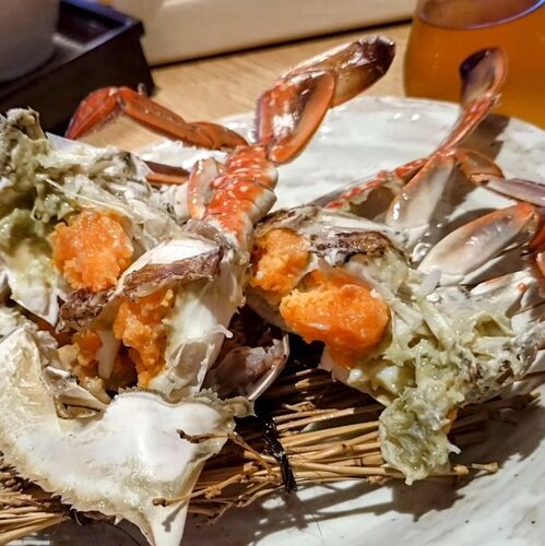 先日、帰省してきた兄と久しぶりに太良の蟹御殿へ。前回は4年前くらいだったか、母と兄と三人で訪れました。今回母の一周忌を前にまた訪れて母の話をしようということになって。 前回はオスの蟹でしたが今回はメスで卵もたっぷり。でも身の味が濃いのでオス…